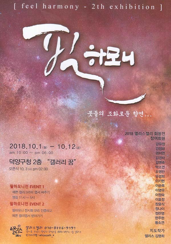 캘리그라피 전시회안내 [필하모니] 페이지 정보 작성자 최고관리자 작성일18-10-01 17:37 조회7,697회 댓글0건 관련링크 이전글 다음글 목록 본문 일 시 : 2018년 10월 1일(월) ~ 10월 12일(금) am 10:00 ~ pm 06:00장 소: 덕양구청 2층 "갤러리 꿈" 댓글목록 등록된 댓글이 없습니다. 이전글 다음글 목록