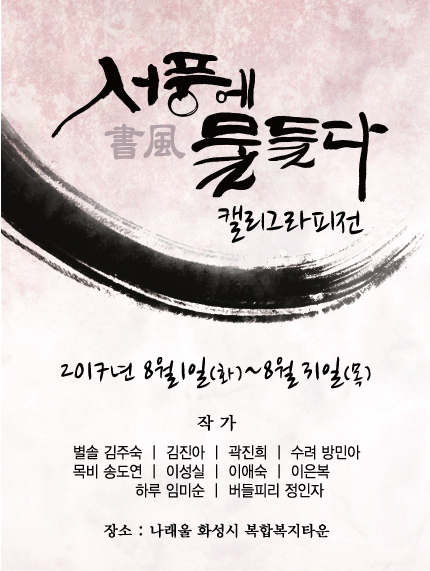 캘리그라피전시 "서풍에 물들다전" 페이지 정보 작성자 최고관리자 작성일18-01-02 17:18 조회6,762회 댓글0건 관련링크 이전글 목록 본문 캘리그라피 전시회 안내 일 시 : 2017년 8월 1일(화) ~ 8월 31일(목) 장 소 : 나래올 화성시 복합복지타운 댓글목록 등록된 댓글이 없습니다. 이전글 목록